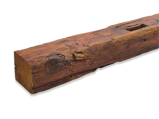 8" x 8" x 61.5" Hand Hewn Reclaimed Wood Mantel Barn Wood