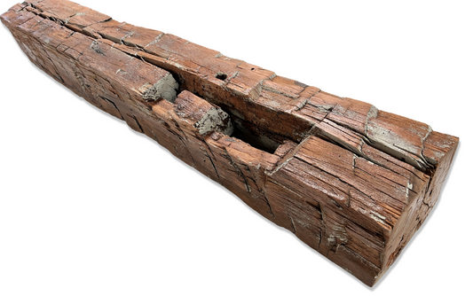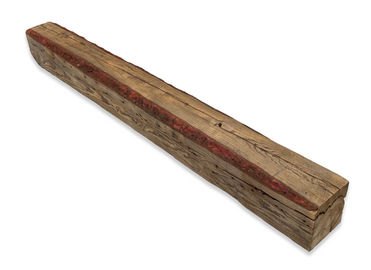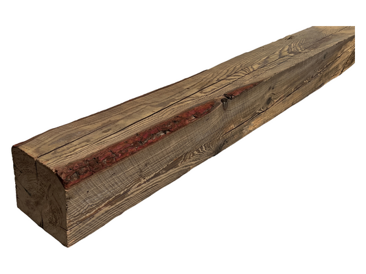 6" x 6" x 60" - Barn Wood Circle Sawn Reclaimed Wood Mantel(Red Bark)A723